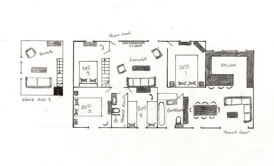 - Mezzanine level chill out room with balcony (above the lounge) with roof light and original mini windows - The snug!